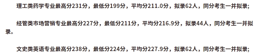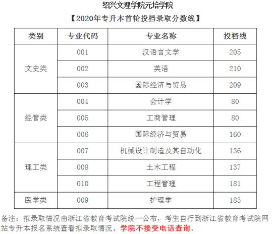 浙江中醫藥大學濱江學院2020年專升本錄取分數線