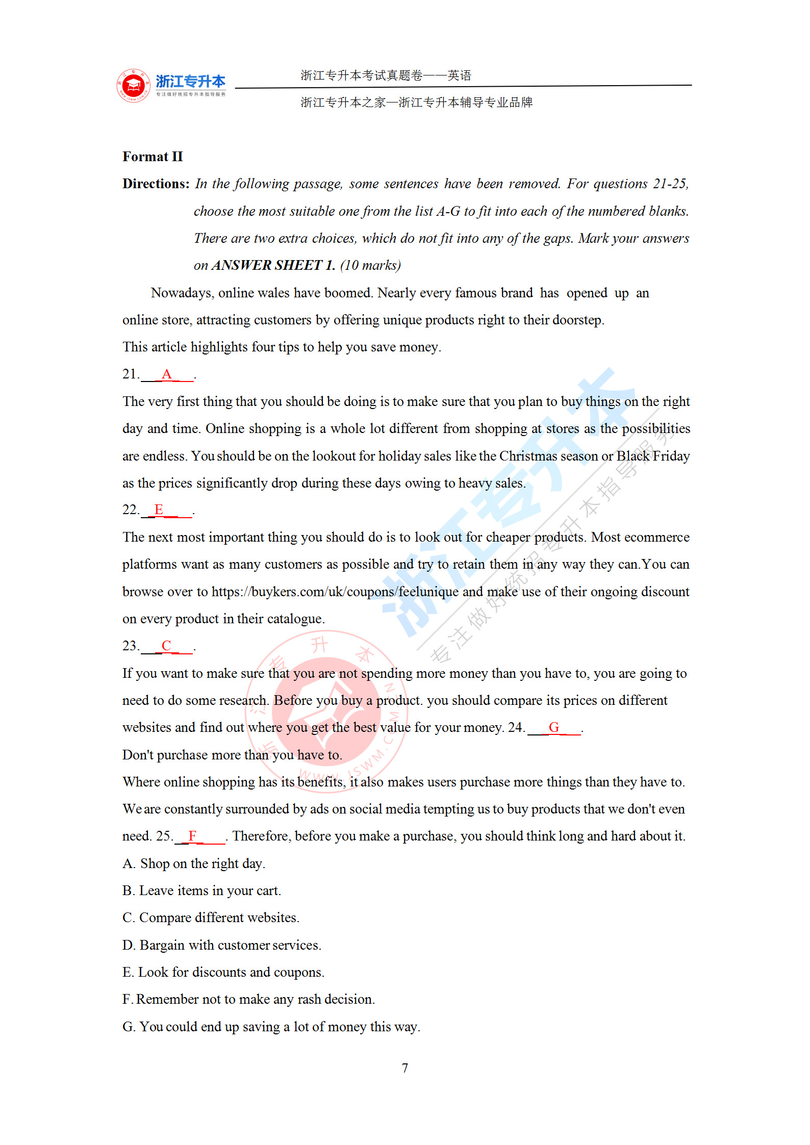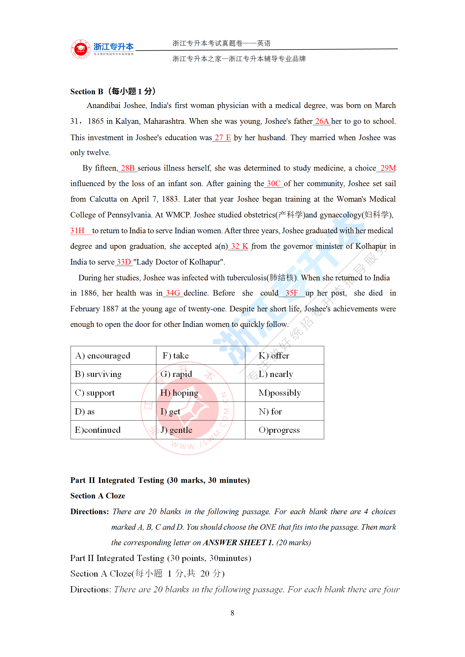 浙江專升本 >統招專升本 > 專升本試題題庫 > 歷年真題 > 2021年浙江專升本《英語》考試真題