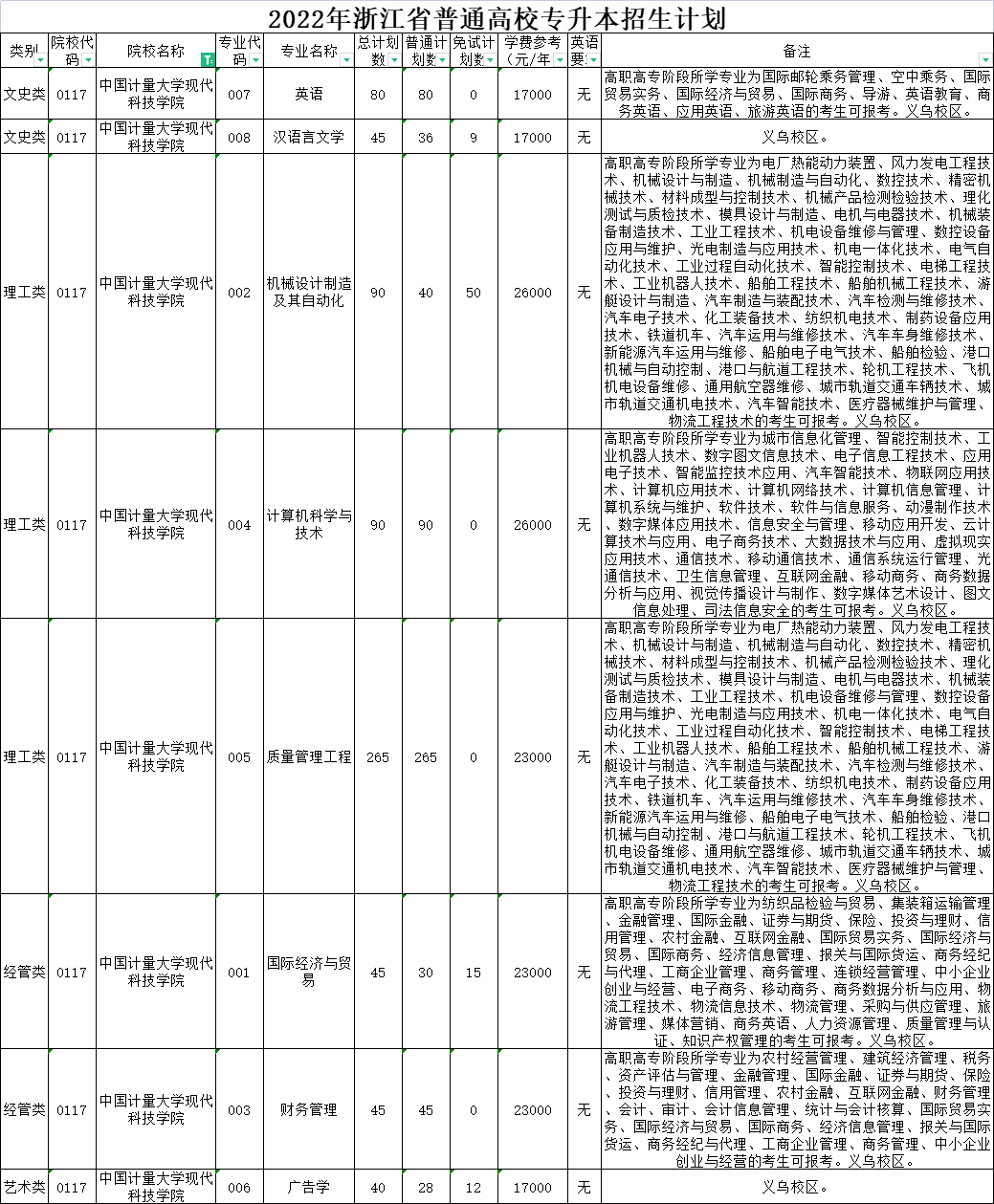 | 經管類 | 0006 | 杭州電子科技大學 | 007 | 電子商務 | 50 | 50 | 0 | 5300 | 無 | 在浙江商業職業技術學院就讀。 |
